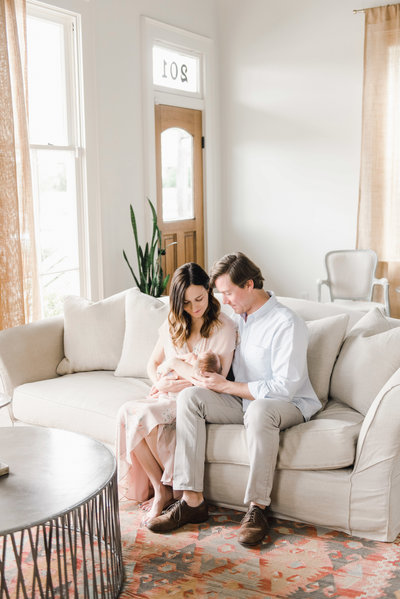 Lifestyle Newborn sessions take place in your home and are typically scheduled for around two - four weeks after baby is born. The younger the infant, the more likely we are to get those sleepy, squishy newborn shots but each family is different, and your family may not be ready by two weeks. Don't worry! Your little one will still be perfectly itty bitty for weeks after they arrive home. I focus on all the naturally amazing details your new little baby- their unique details and expressions, you and your partner and baby's siblings holding and interacting with them and the baby laying or moving around naturally.